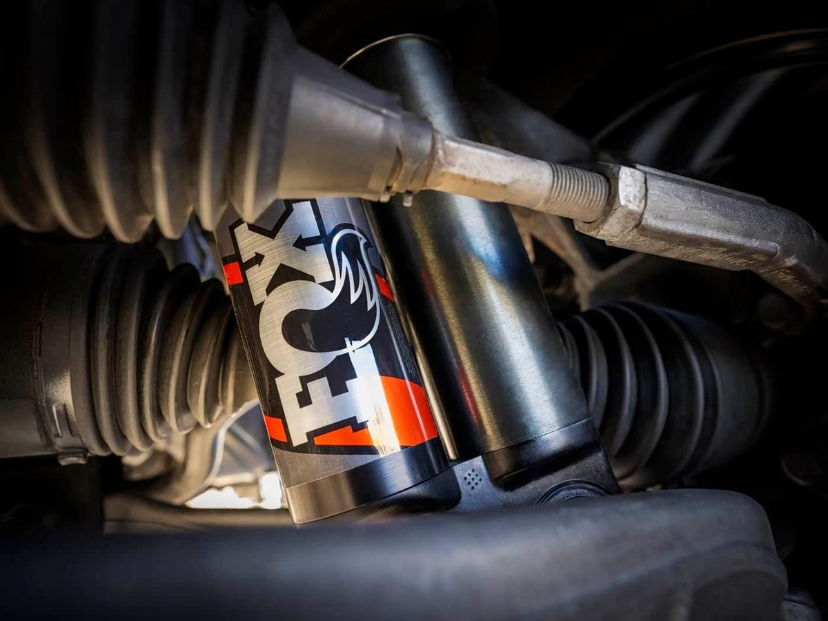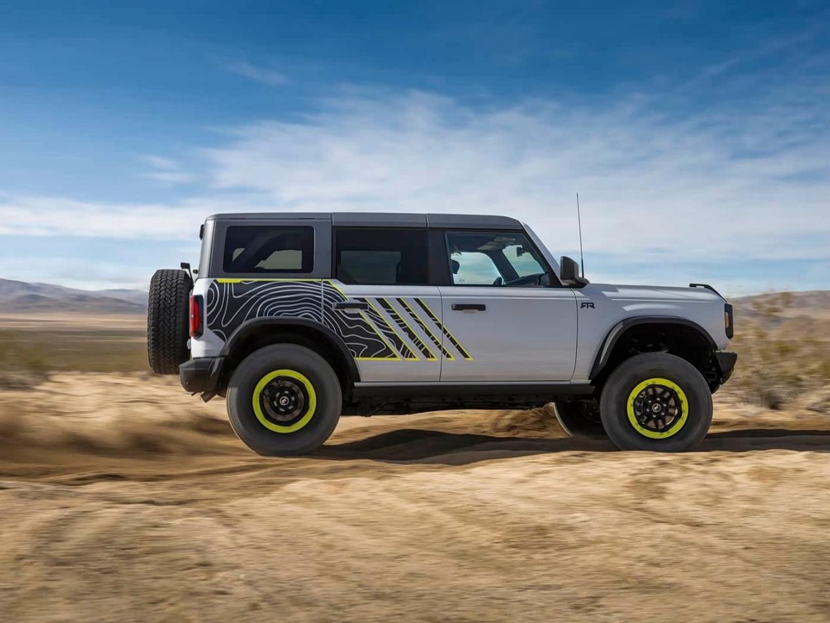 整车外观极具看点的地方在于,烈马Bronco RTR将会标配33英寸轮胎,以及悬架升高功能,因此这台车出厂就拥有优异的通过性。在此基础上,新车还可以选装“大脚”套件,也就是35英寸的轮胎,同步可选装的还有升级FOX减震器和前后桥差速锁,可以进一步提升车辆的通过能力与脱困性能。