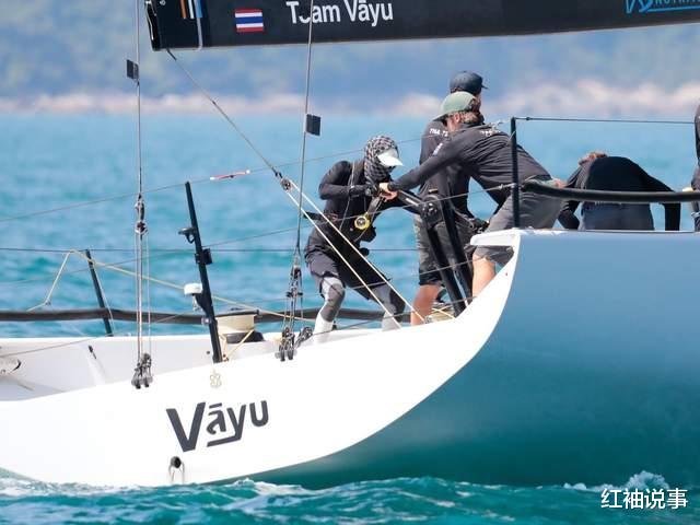 当天IRCZero国际帆船赛进行第三、四轮积分赛,Vayu队(帆号THA 72)的舵手正是王后。舵在帆船航行中极为关键,关乎着船只能否高效行驶与灵活操控。苏提达王后对风向和海况变化判断精准,迅速转动舵轮,让船只灵活穿梭在海面。