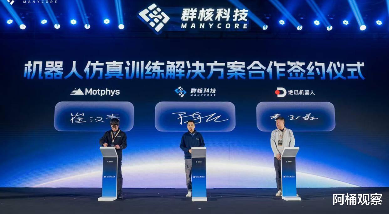 空间智能应用遍地开花,具身智能、XR、文娱等多行业现场签约依托空间数据优势,在本次大会上,谋先飞(Motphys)、地瓜机器人与群核空间智能训练平台SpatialVerse正式达成深度合作,将共同推进机器人仿真训练解决方案的创新落地。三方将整合各自在具身智能仿真训练平台、云算力、空间训练数据等领域的优势,共建高效、精准、可扩展的机器人仿真训练体系,攻克机器人仿真训练中场景泛化难、训练效率低、Sim2Real迁移落差大等核心挑战。