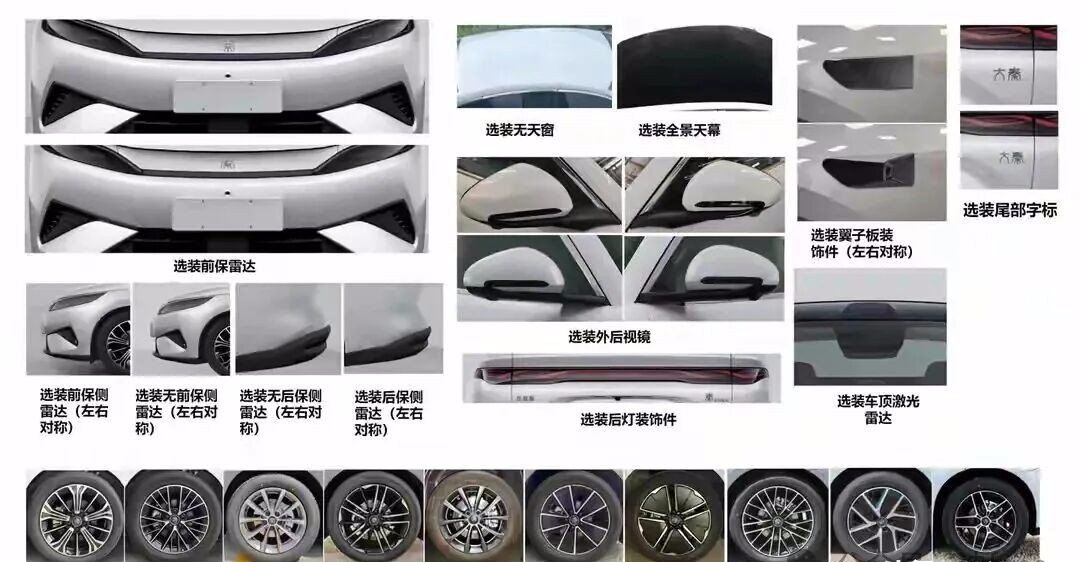 新车长宽高4866/1880/1495mm,轴距2820mm,搭载1.5L自吸发动机+电机插混系统,发动机74kW、电机175kW,匹配磷酸铁锂电池组。选装配置丰富,全景天幕、车顶激光雷达、多款轮圈等均可按需选择,此前申报的纯电版还可选“大秦”“秦Ultra”尾标,动力较秦PLUS大幅提升。