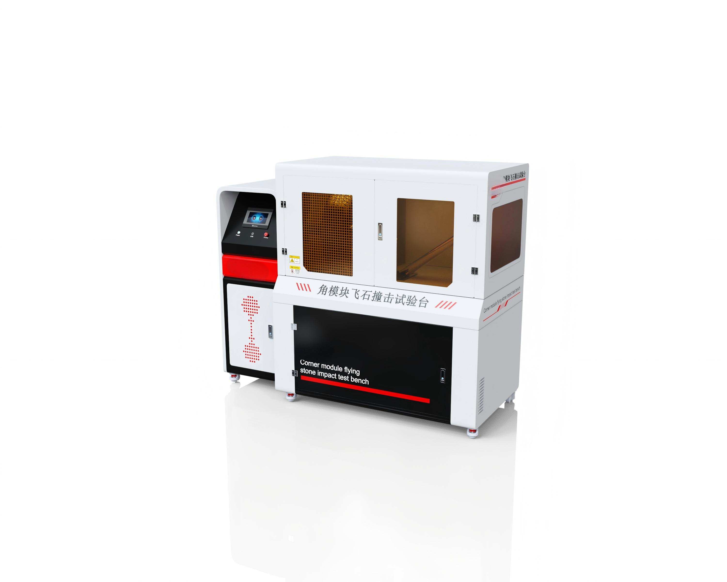 角模块飞石撞击试验台飞石试验台,35m/s高速与50g大质量组合可模拟极端冲击,0.1g小质量与≥10Hz高频组合能复现持续磨蚀,士45°角度可调全面覆盖真实撞击场景。设备实现了多维极限参数的高精度集成控制,为角模块的可靠性评估及行业标准制定提供了至关重要的研发装备技术参数: