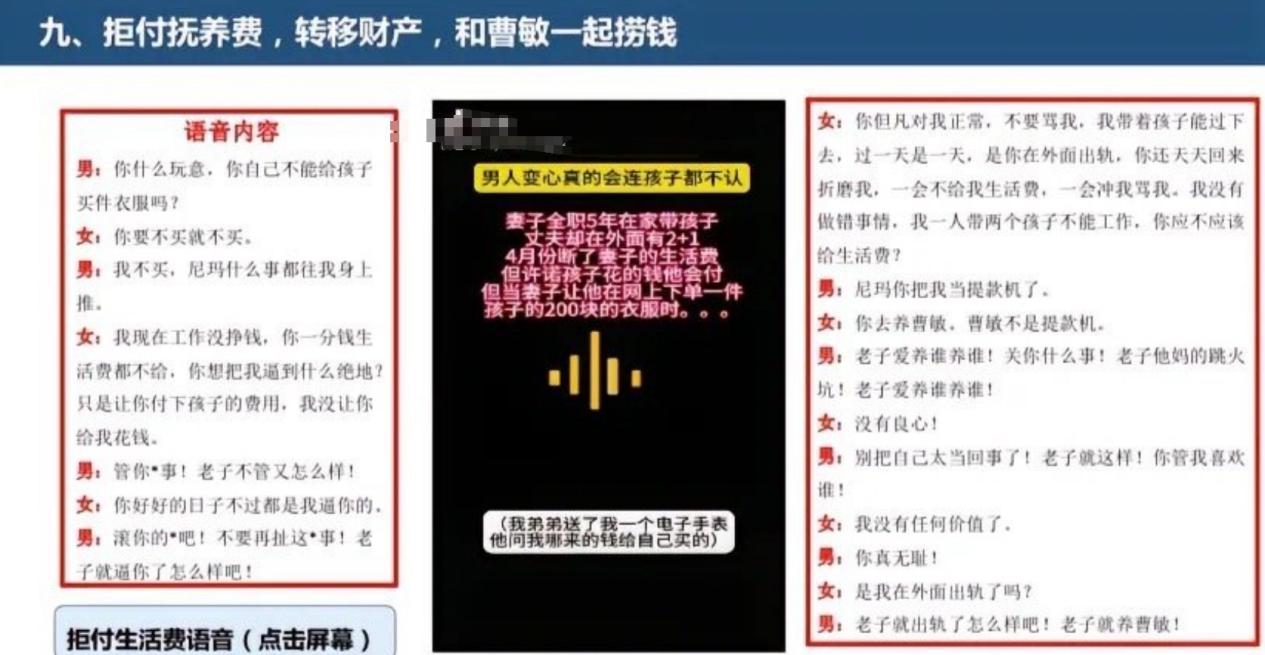 据悉,在该女子制作的PPT中,一共给男子列出了14宗罪,其中包括婚内出轨,长期与曹姓女子保持不正当关系,在婚前家暴自己,离婚之后更是拒绝支付抚养费,让自己身患抑郁,最终忍无可忍,选择站出来举报自己的前夫。不少网友在看完之后,表示该女子条理清楚,该有的证据也都齐全,这位前夫真的太不是东西了,这种人还配做公务员,简直给公务员的队伍蒙羞。