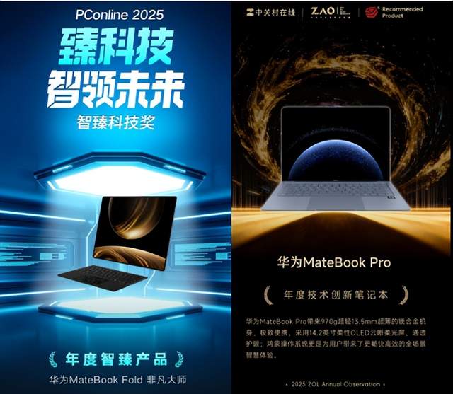 鸿蒙电脑还是有获得多家媒体年度评选奖项的,获得了行业的深度认可。华为MateBook Fold 非凡大师就拿下了PConline 2025智臻科技奖“年度智臻产品”,“年度技术创新折叠电脑”等多项荣誉,华为MateBook Pro则是拿下了“2025年度技术创新笔记本”。
