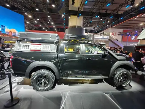 车身侧面线条硬朗,轮眉采用外扩设计,搭配20英寸越野轮胎,进一步强化越野视觉感受。车尾配备粗壮的防滚架与全尺寸备胎,货箱龙门架处新增绑缚锚点,提升装载便利性,整体设计既保留皮卡的功能性,又不失时尚感。此外,新车还标配涉水喉、金属前后竞技杠,越野侧踏(连接在车架大梁上),3mm厚底盘护甲,全方位保护车辆。