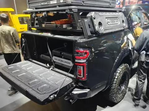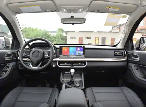 内饰在实用性基础上提升豪华感,中控台采用对称式设计,搭载Coffee OS 3智能座舱,配备12.3英寸悬浮式中控屏与全液晶仪表盘,车机系统支持车联网、语音交互等功能,操作流畅便捷。座椅采用仿皮材质包裹,支撑性与包裹性优异,主驾座椅支持多向电动调节,长途驾驶不易疲劳。后排空间经过优化,腿部空间充裕,配合后排空调出风口,提升了乘坐舒适性,打破了皮卡“工具车”的固有印象。