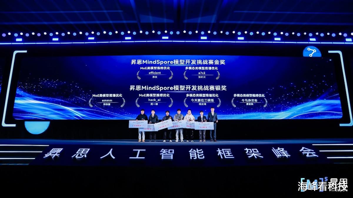 昇思MindSpore模型开发挑战赛聚焦前沿的MoE类和多模态类模型,考验参赛队伍在模型推理优化方面的实战能力,峰会上,本次挑战赛的金奖、银奖获奖选手接受颁奖。