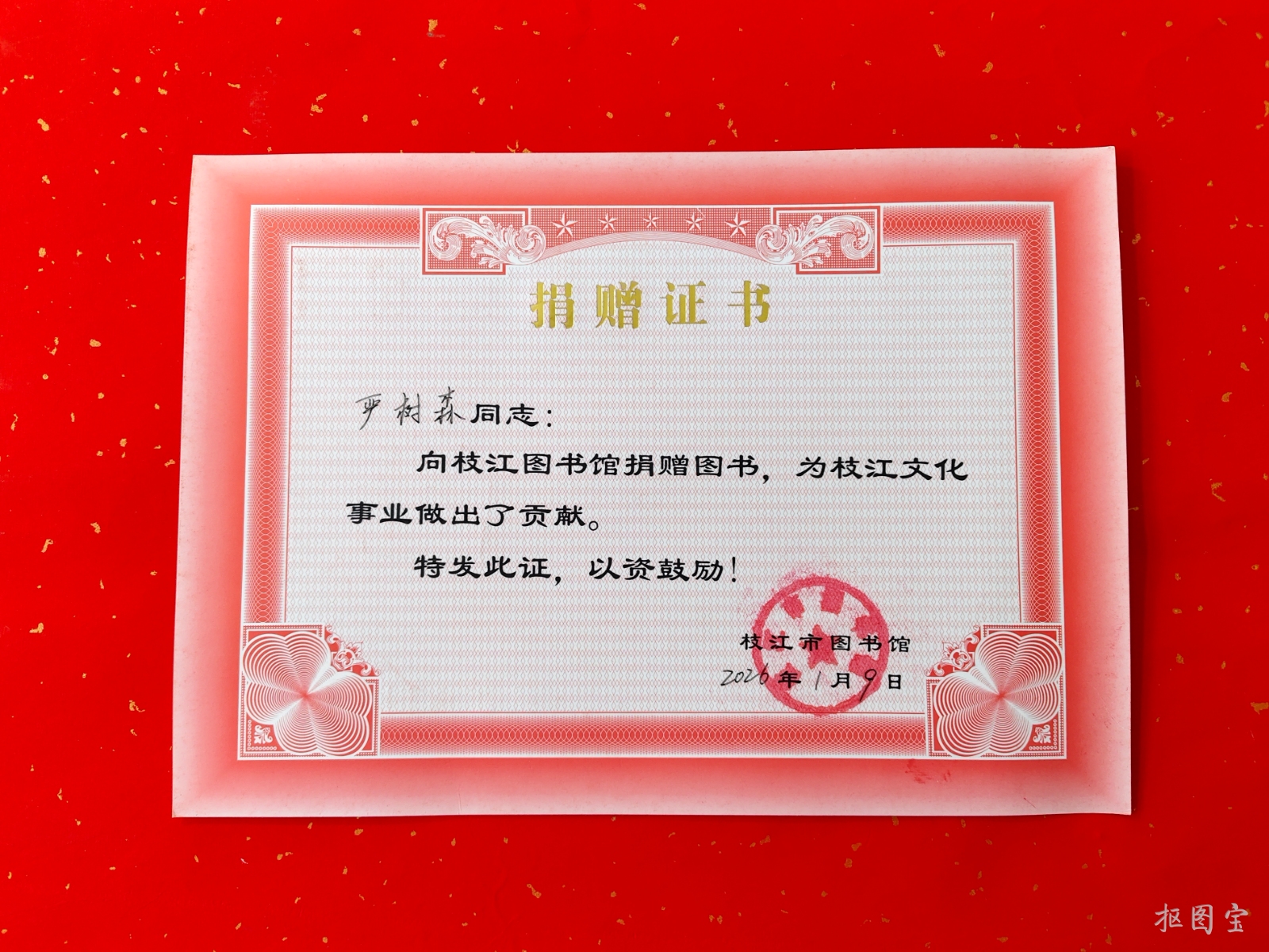 此幅书法及《严树森小篆百幅五言联》被宜都市图书馆永久收藏