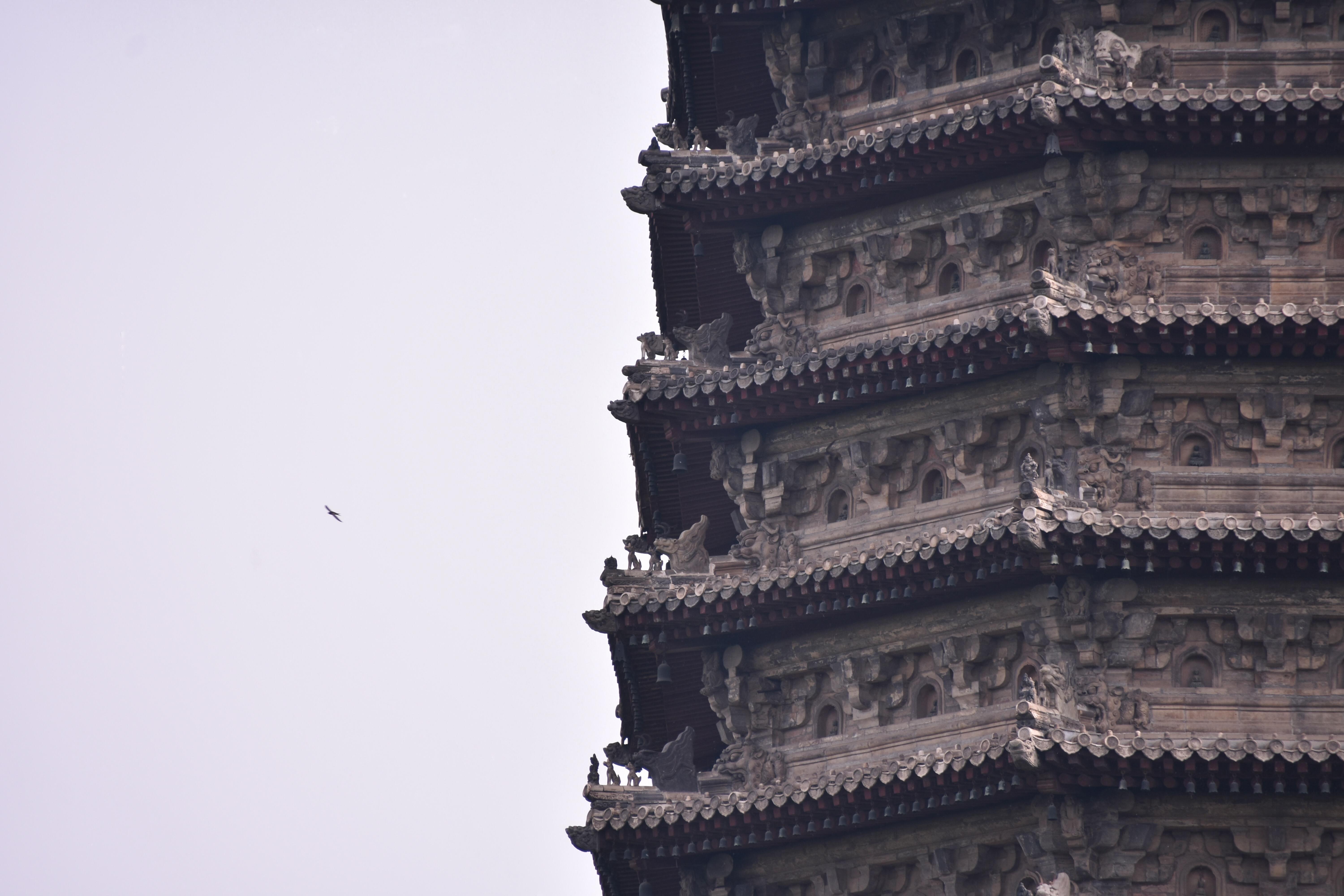 玲珑塔为八角十三层密檐式实心砖塔,近 50 米的高度,在当时的北京城中也算得上是高耸入云。它仿造辽代北京天宁寺塔而建,与天宁寺塔并称为“姊妹塔”。这一仿造并非简单的复制,而是明代工匠在继承辽代建筑技艺的基础上,进行的创新与发展。塔身自下而上逐层收分,这种设计不仅在视觉上给人以和谐优美的感觉,更体现了古代工匠对建筑力学的深刻理解。密檐排列紧凑,一层接着一层,层层叠叠,仿佛在向天空延伸,展现出一种向上的力量感。檐下装饰的斗拱,不仅是建筑结构的重要组成部分,起到了承上启下、传递荷载的作用,更是精美的装饰元素,展现了古代建筑技艺的高超。