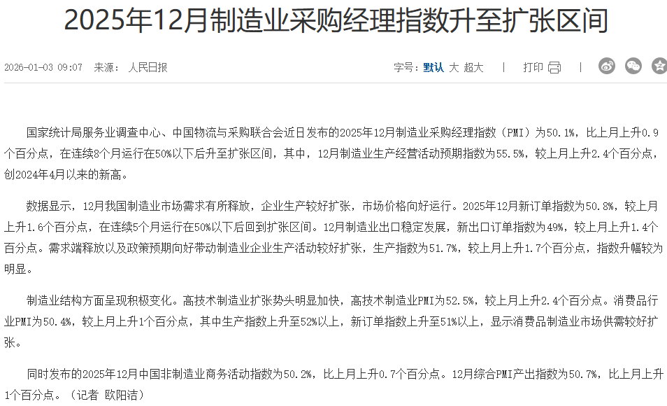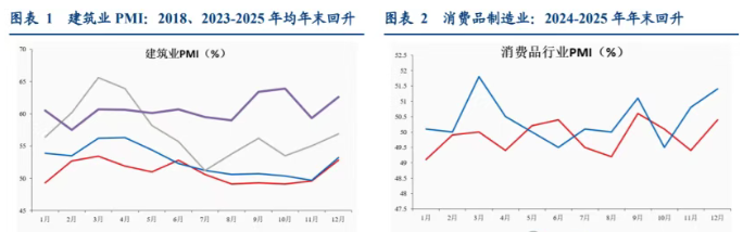 节前楼上就提前安排了不少投资资金,其中就有5000亿的政策性金融工具和提前批的建设项目清单。这些资金砸下去,建筑业PMI直接从 49.6% 蹦到了 52.8% 。另外就是快过年了,厂家都在忙着备货。消费品制造业在12月的表现明显好于11月。尤其是农副食品加工、酒饮料这些行业,大伙对后市的预期都还算乐观: