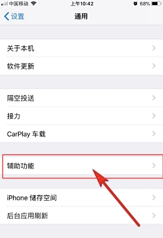 2、进入到通用页面后,点击进入【辅助功能】。