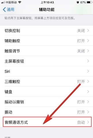3、进入到辅助功能页面后,点击【音频通话方式】。