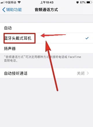 4、最后进入到音频通话方式后,点击选择【蓝牙头戴式耳机】即可了。