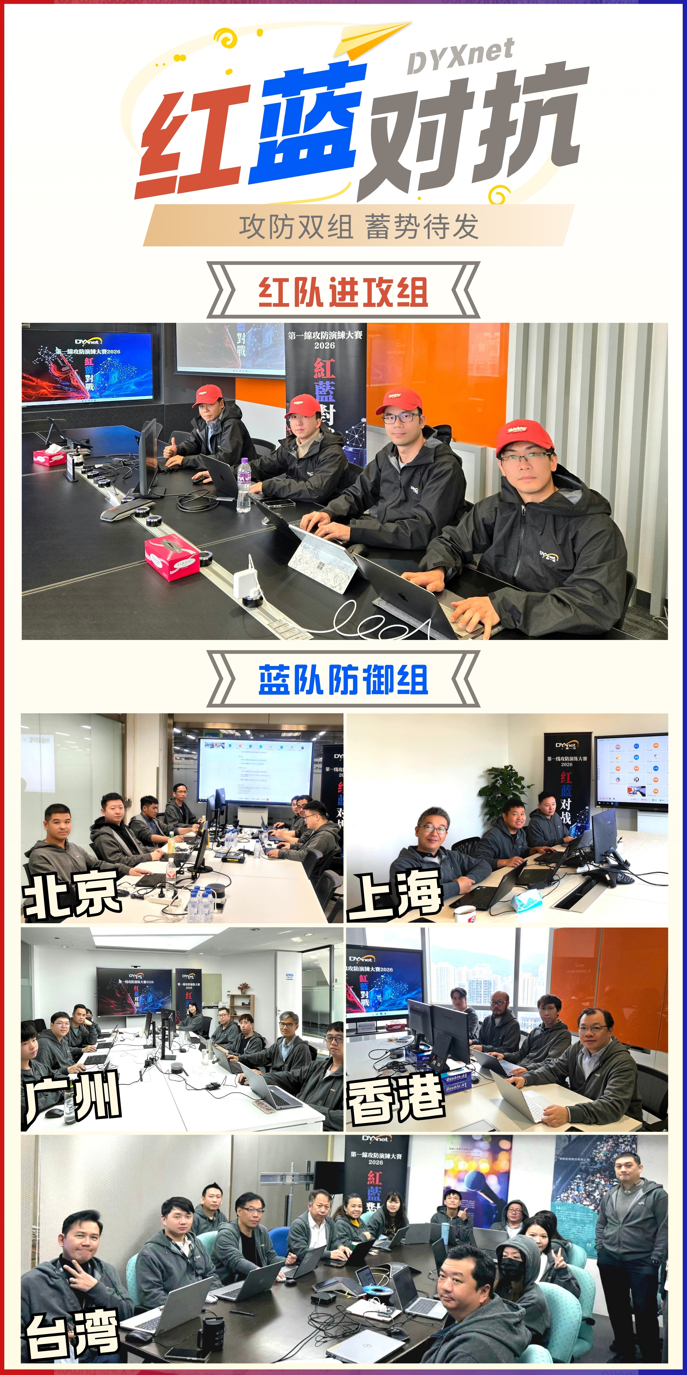 企业安全防线的实战韧性,如何经得起复杂威胁考验?1月29日,DYXnet年度“红蓝对战 攻防演练大赛”给出答案。第一线集结大陆、香港、台湾两岸三地四十余位网络安全精英,在还原全球真实网络生态与攻击态势的场景中,以红蓝对抗淬炼防护体系,用专业为全球客户筑牢数字安全屏障,践行“安全赋能者”的匠人精神与担当。