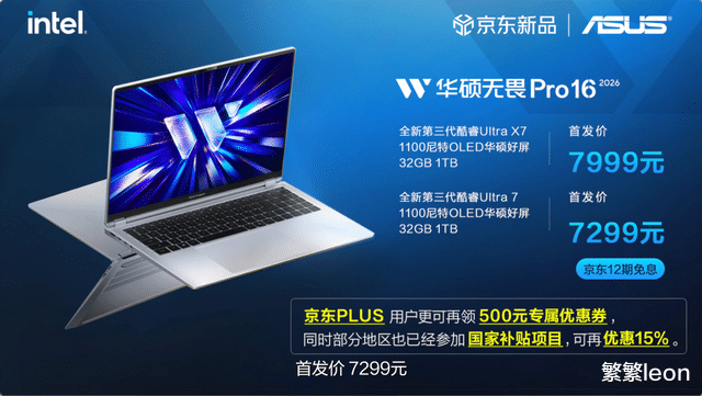 华硕无畏Pro16 2026,首发7999元。