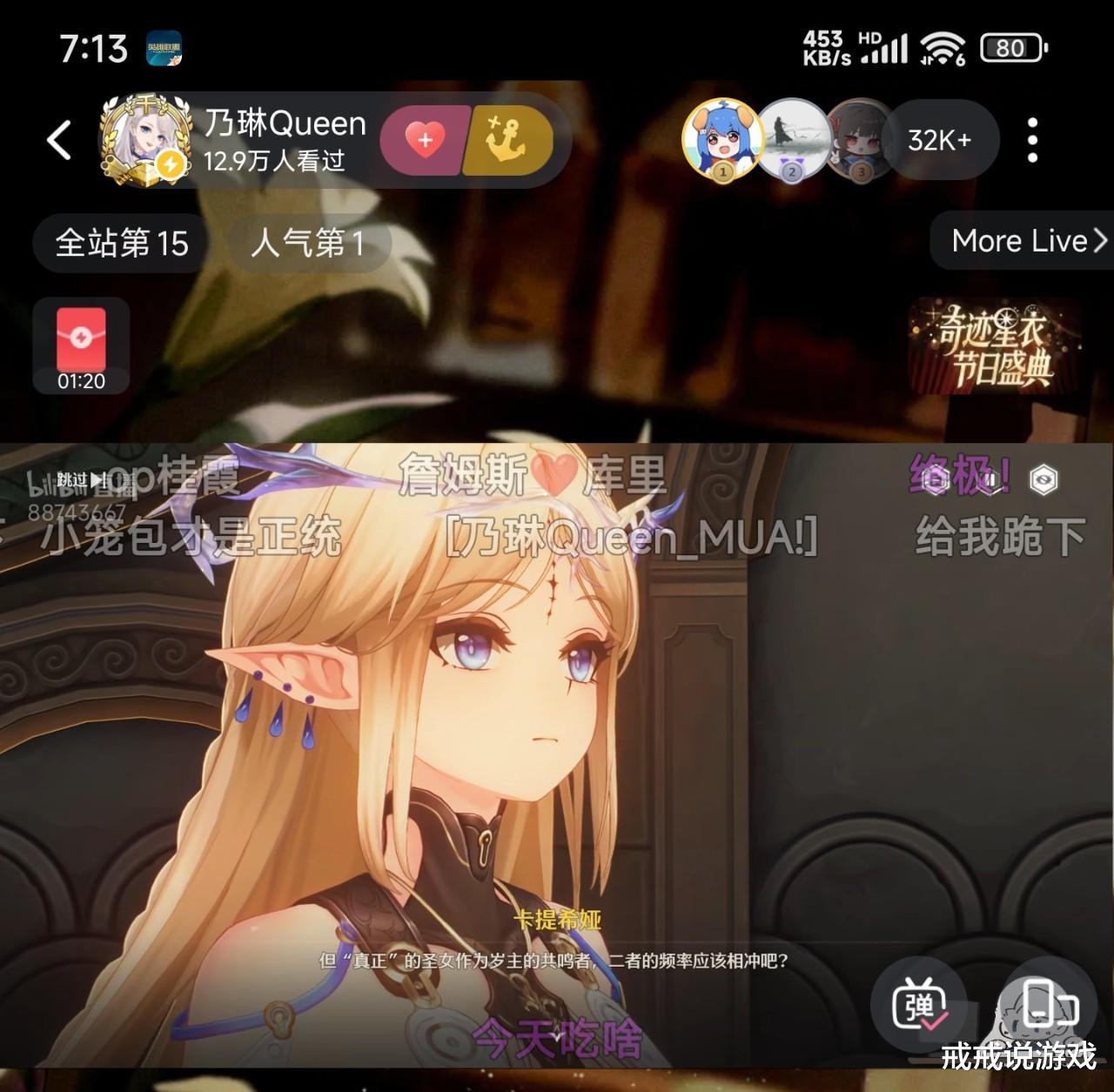 这个热度,别说在A-SOUL内部,就是放到整个B站虚拟主播区,也是相当炸裂的存在。一堆潮友(《鸣潮》玩家)和“一个魂”(A-SOUL粉丝)在弹幕里狂刷“爆了”,直播间都快成欢乐的海洋了。于是,一个江湖传说开始流传:乃琳这是要坐稳“鸣潮一姐”的宝座了?