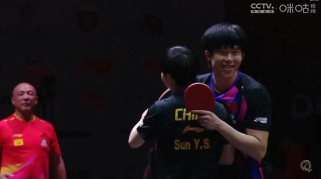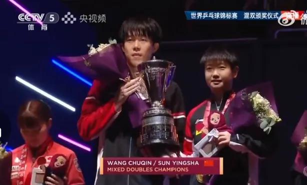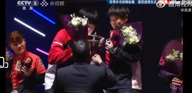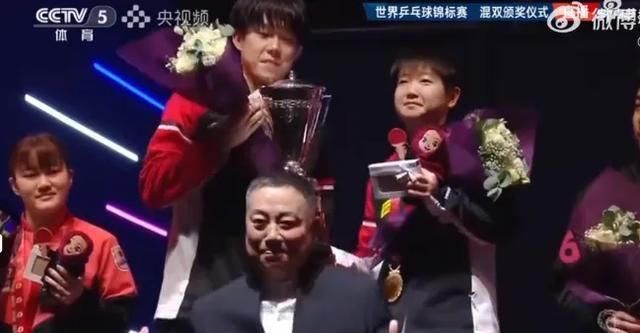 莎莎和大头两个人对于斩获冠军显得相当的兴奋,尤其是看到刘国梁主席亲自为两人颁奖,嘴角更是压不住
