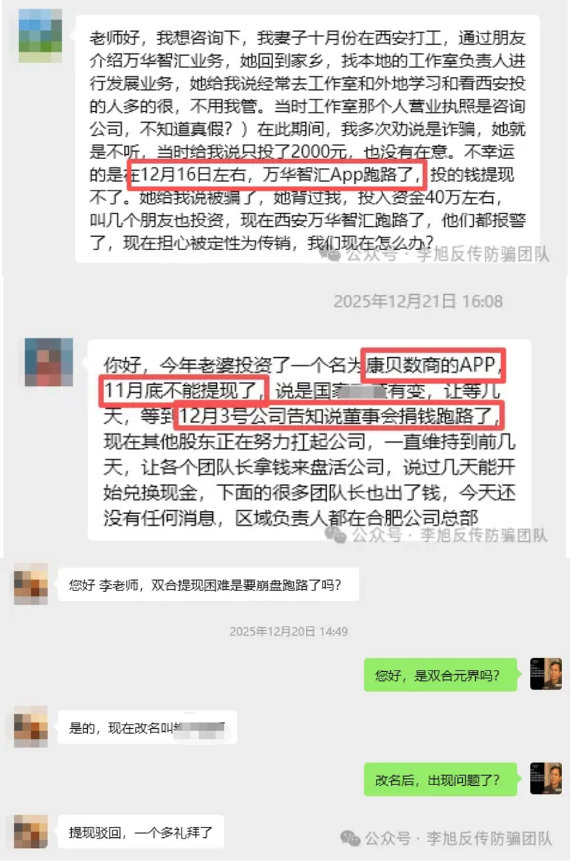 此外:“煜志金融”“佰宜康”股票跟单“朗润”“DWS德意志”“柏达慧”、贵州新创人生态农业“益航科技”GT国际“万华智汇”益善德团队新加坡“太白”“康贝数商”“加百利”“安我股保”“博发BF”“名旺集团”“森品优选”“启迪医疗”“金儿商城”“芯合卓越”“美琳莱卡”等几十个项目都已确认跑路,虽打着的旗号各不相同,但套路如出一辙。(名单可能不完整,欢迎评论区补充,信息均来自网友真实反馈。)