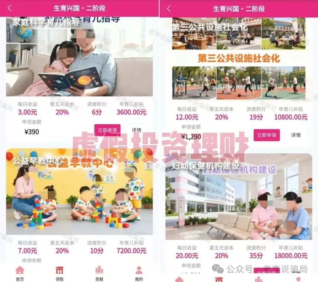 冒充卫健委推广虚假“生育卡”,要求缴纳2000元办理,并以赠送黄金为诱饵推销理财项目。