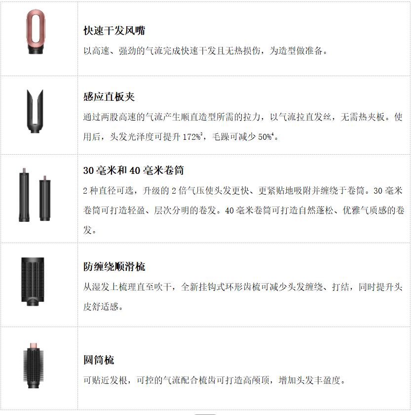 戴森Supersonic Co-anda 2x™造型吹风机6款智能配件及功能: