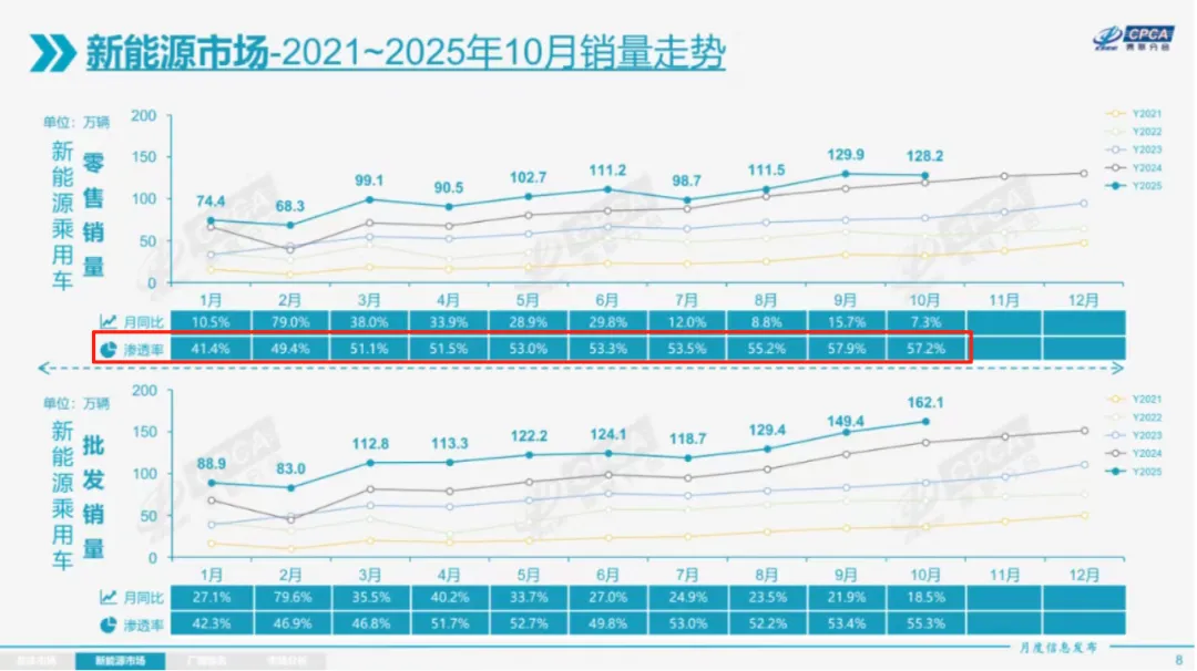 时间来到2025年12月,新能源汽车的市场渗透率已经超过50%。激烈的市场竞争中,头部车企凭借技术、渠道与品牌优势,已包揽超70%的市场份额,将大部分中小品牌挤压至生存边缘。