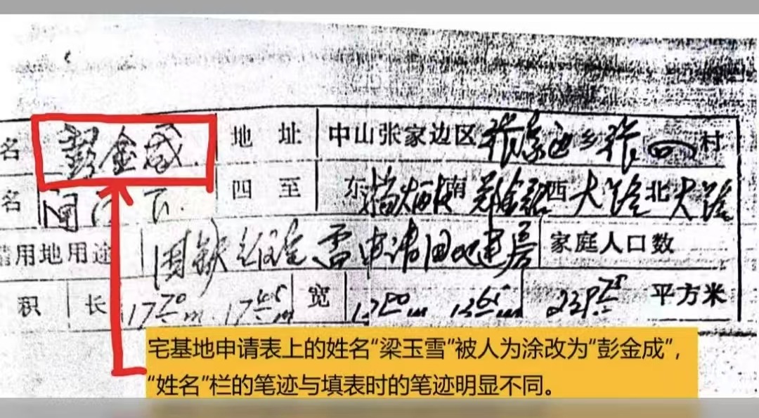 此外,陈方荣的亲友梁玉雪也遭遇了土地相关纠纷。据梁玉雪反映,她报案后,开发区公安分局相关工作人员以立案为由引导其签名,后因日期问题产生异议,最终该案件收到了不予立案通知书。多次投诉后,虽有工作人员沟通协调,但案件处理未达到预期,后续又被发回原办理单位,让当事人深感维权艰难。相关材料显示,宅基地申请表上 “梁玉雪” 的姓名被人为涂改为 “彭金成”,且 “姓名” 栏的笔迹与填表时的笔迹明显不同。