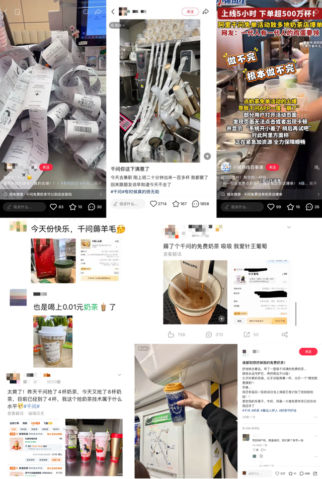 免单活动对阿里生态的激活效果也非常显著,淘宝闪购、盒马、天猫超市等业务线都承接了流量溢出。合作的茶饮品牌也迎来销量暴增,根据媒体报道,部分门店在2月6日当天的日单量增长超过200%。