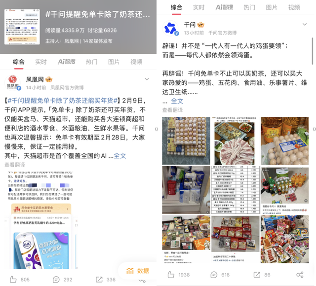 免费的“羊毛”谁都爱,但是要把消息快速扩散出去,关键还是得靠用户的自传播。借助万能的网友,千问请客这件事,也从一个原本一本正经的活动,逐渐发酵成了人人参与玩梗的社会热点事件。