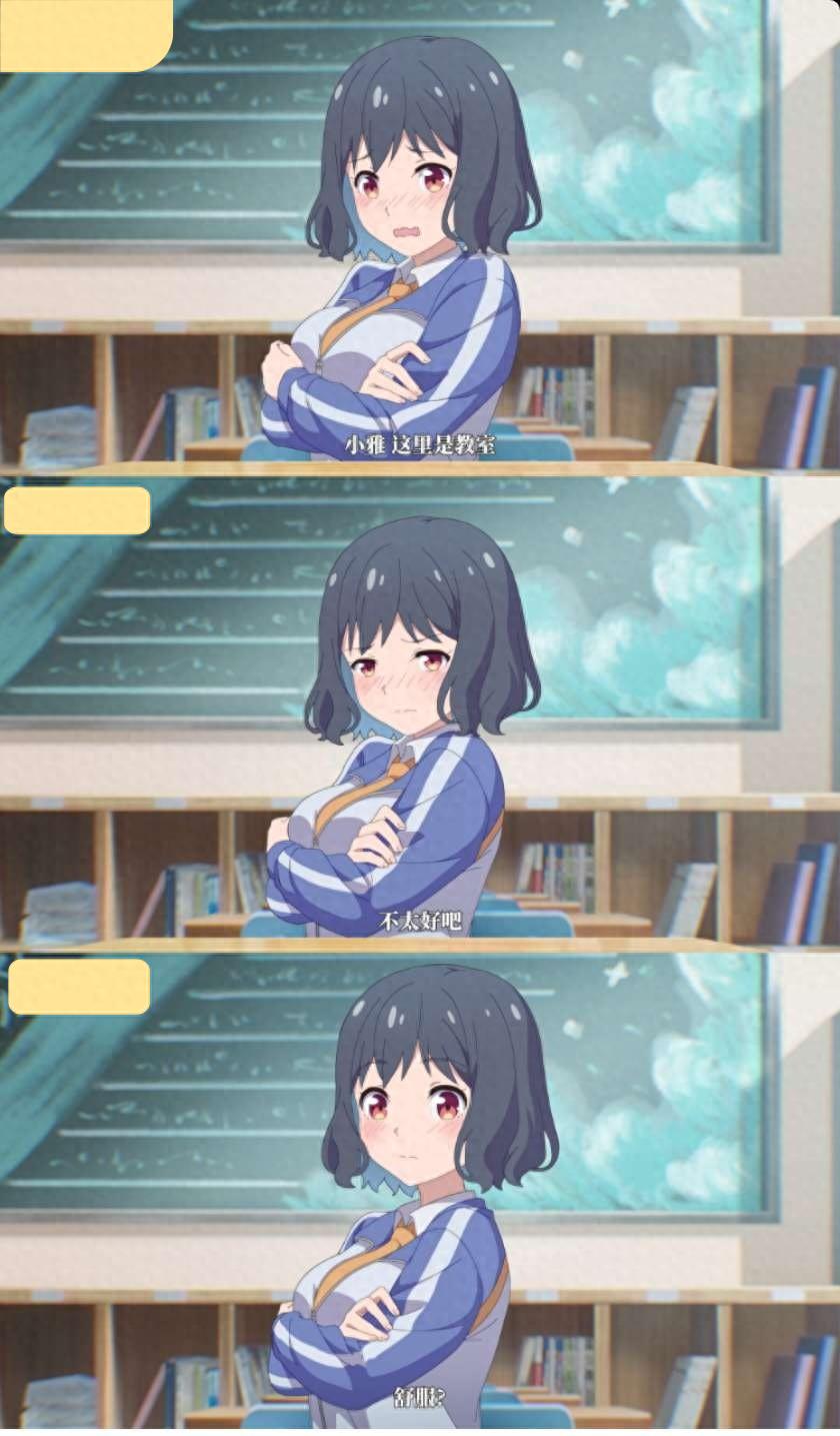 比如阿宅们认真研究的数学题、我打辉夜姬,真的假的、圣地巡礼、轻百突破芳文卡脖子技术、此时,历史发生了巨变(、戳图干什么啊?愣着啊!、合着天降又干掉青梅了、bro就住在圣地等弹幕简直就是把阿宅们的话语和日常直接“照搬”进动画中,这种很有意思的卖萌和【福利】真是越看越有意思。想必看完特别篇后的你肯定和缘叶的想法一样吧,话说,这不是你理想中的高中生活?