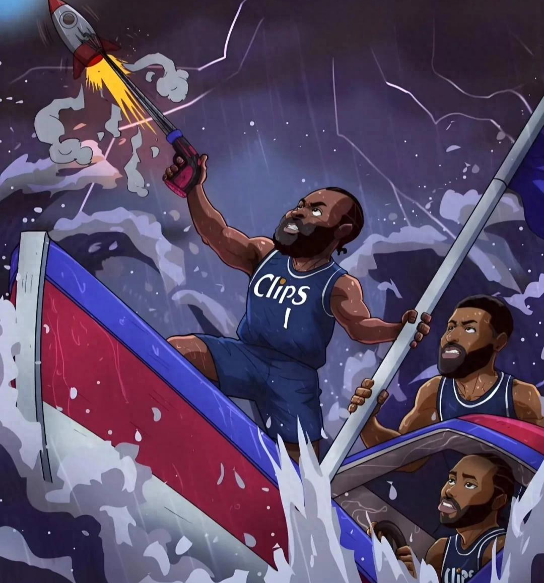 2023年11月中旬,威少主动牺牲自己,申请降为替补,甚至在“五小阵容”中顶到5号位与中锋肉搏。哈登则被确认为核心控卫,带领快船开始了荡气回肠的“北伐”之征,一度打出了平联盟当赛季纪录的9连胜。因此图中的领航员是哈登,威少则潜在水下默默扛起了全员。