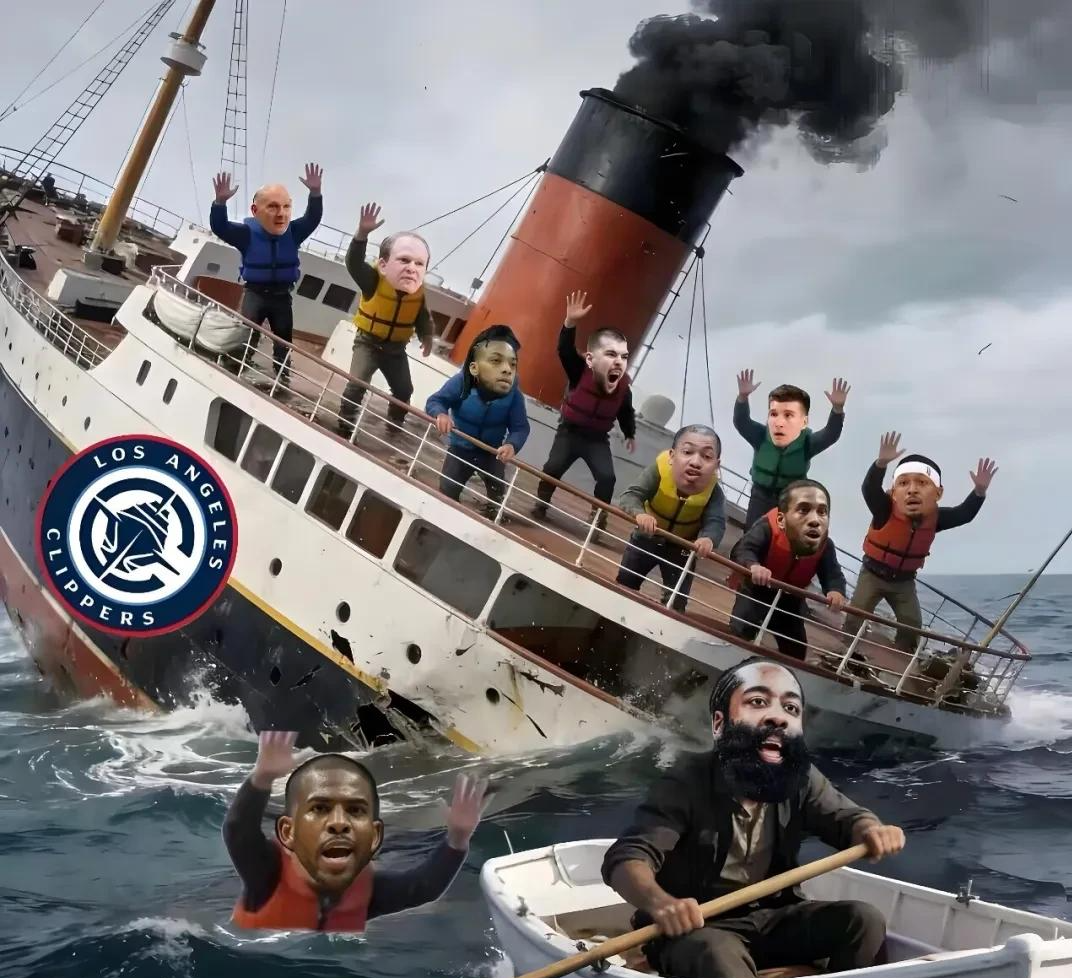 这是曾经快船最感动我的一组图。这是如今快船最让我哭笑不得的图。第一张是两年前,加州四子齐聚快船,哈登自信地喊出:“我不是