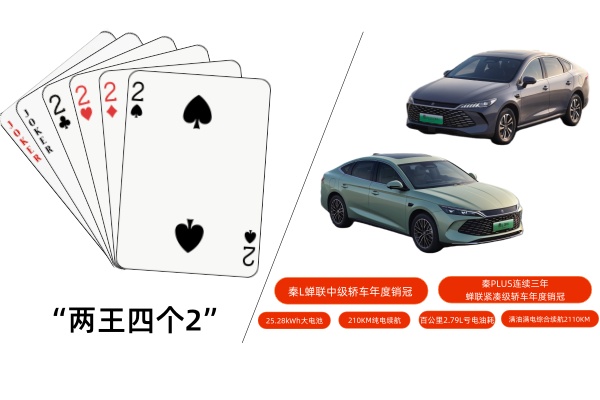 此四个2非彼四个2,但我看跟在斗地主里的效果也差不多,纯电210公里续航,让秦成为10万级插混车里纯电续航唯一突破200km的车型。日常通勤可以轻松实现“两周不充电”,综合续航2110公里,配合2.79L/100km的亏电油耗,长途出行的成本和便利性已经是天花板级别。