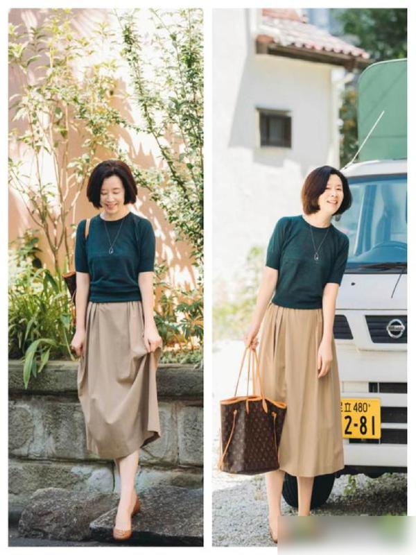 衣服更是讲究"少即是多",纯色针织衫配垂感半裙,全身颜色不超过三种,像水墨画留白似的,高级感自然就出来了。