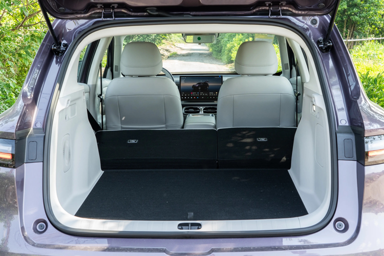 再看银河E5,得益于更长的车身尺寸优势,它的空间表现同样亮眼。我以相同的坐姿体验后排,腿部空间余量同样接近20公分,整体乘坐感受和零跑B10不相上下。毕竟银河E5的车长比B10多出100毫米,在空间的基础潜力上更占优,但两款车实际的车内驾乘空间体验,勉强算是可以打个平手吧。