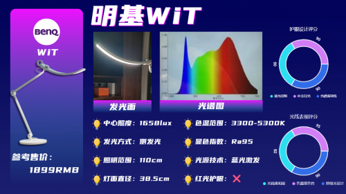 功能方面,它有入座感应和智能调光功能,灯光能根据环境自动调整亮度,同时支持多档定时提醒,使用起来相对方便,不需要频繁手动操作。此外,它虽然补全了红光,但它的蓝光峰值接近1.0,连续长时间使用眼睛仍可能感到疲劳。