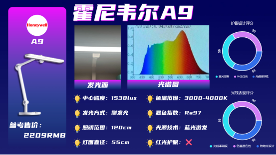 2、霍尼韦尔A9|综合表现均衡的实用款护眼台灯