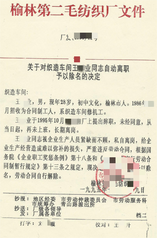 值得注意的是,榆林第二毛纺织厂虽已改制注销,但作为当时的一级职能部门,上述两份红头文件具有相应严肃性和有效性,并非随意出具的普通材料。