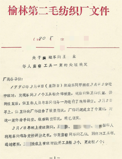 据关键依据显示,王某业原始学历为初中,1986年以合同制工人身份被榆林第二毛纺织厂招收,其在该厂工作期间存在明确违规记录: