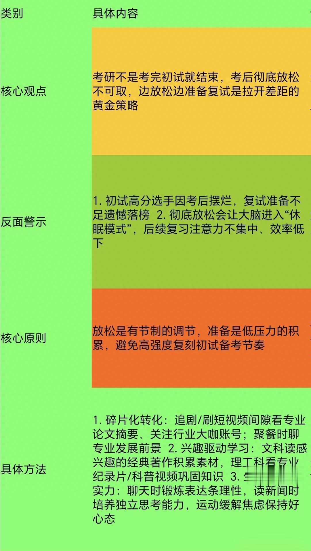 但这并不意味着,考后就要立刻开启“初试复刻版”的高强度学习。弦绷得太紧会断,彻底松开也会失去弹性。边放松边准备复试,才是最科学的节奏。这里的“放松”,是有节制的调节;这里的“准备”,是低压力的积累。