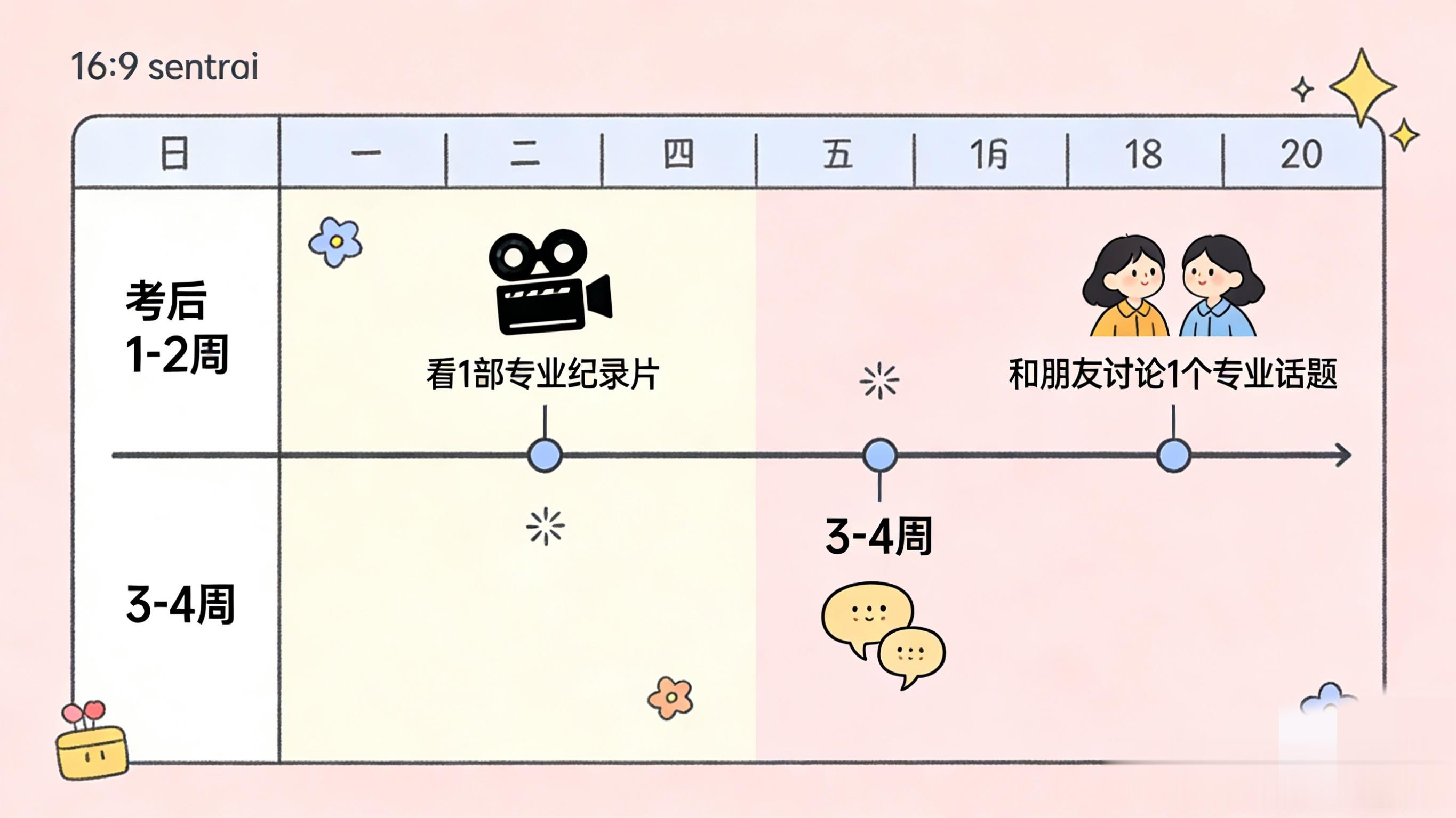 你可以追剧,但可以在追剧间隙,花10分钟看一篇专业领域的前沿论文摘要;你可以刷短视频,但可以关注几个行业内的大咖账号,利用碎片时间吸收专业干货;你可以和朋友聚餐,但聊天时可以主动聊一聊自己报考专业的发展前景,在交流中梳理自己的思路。