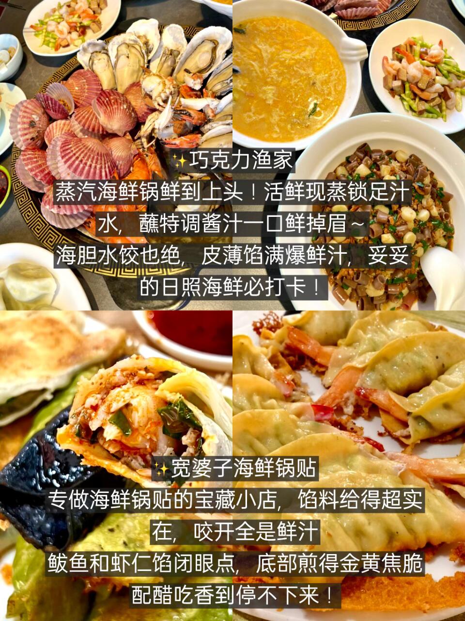 ✨巧克力渔家(三浴场店)🍤:蒸汽海鲜锅鲜到上头!活鲜现蒸锁足汁水,🤤蘸特调酱汁一口鲜掉眉~海胆水饺也绝,皮薄馅满爆鲜汁,妥妥的日照海鲜必打卡!