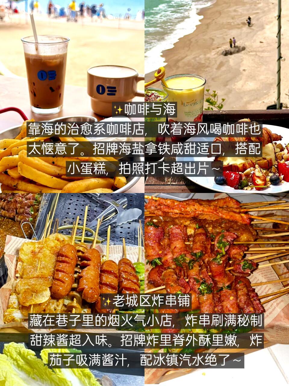 ✨咖啡与海☕:靠海的治愈系咖啡店,吹着海风喝咖啡也太惬意了。招牌海盐拿铁咸甜适口,搭配小蛋糕,拍照📸打卡超出片~