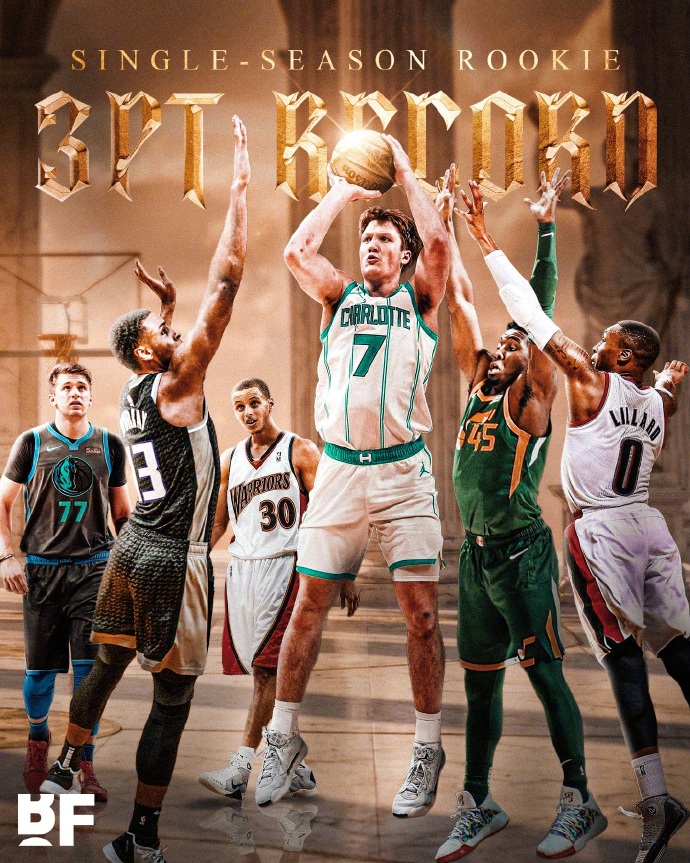 4号秀克尼佩尔也相当给力,出战31分钟,投篮17中10,其中三分球12中8,轰下28分4板2助1断1帽,正负值+26全队最高。克尼佩尔今天命中多达8记三分,追平了个人生涯的单场三分命中数纪录,新秀赛季已经投进209记三分,打破了基根·穆雷22-23赛季创造的纪录(206记),创造了新的NBA新秀单赛季三分命中数纪录。另外,克尼佩尔本赛季的三分命中数也高居联盟第一。