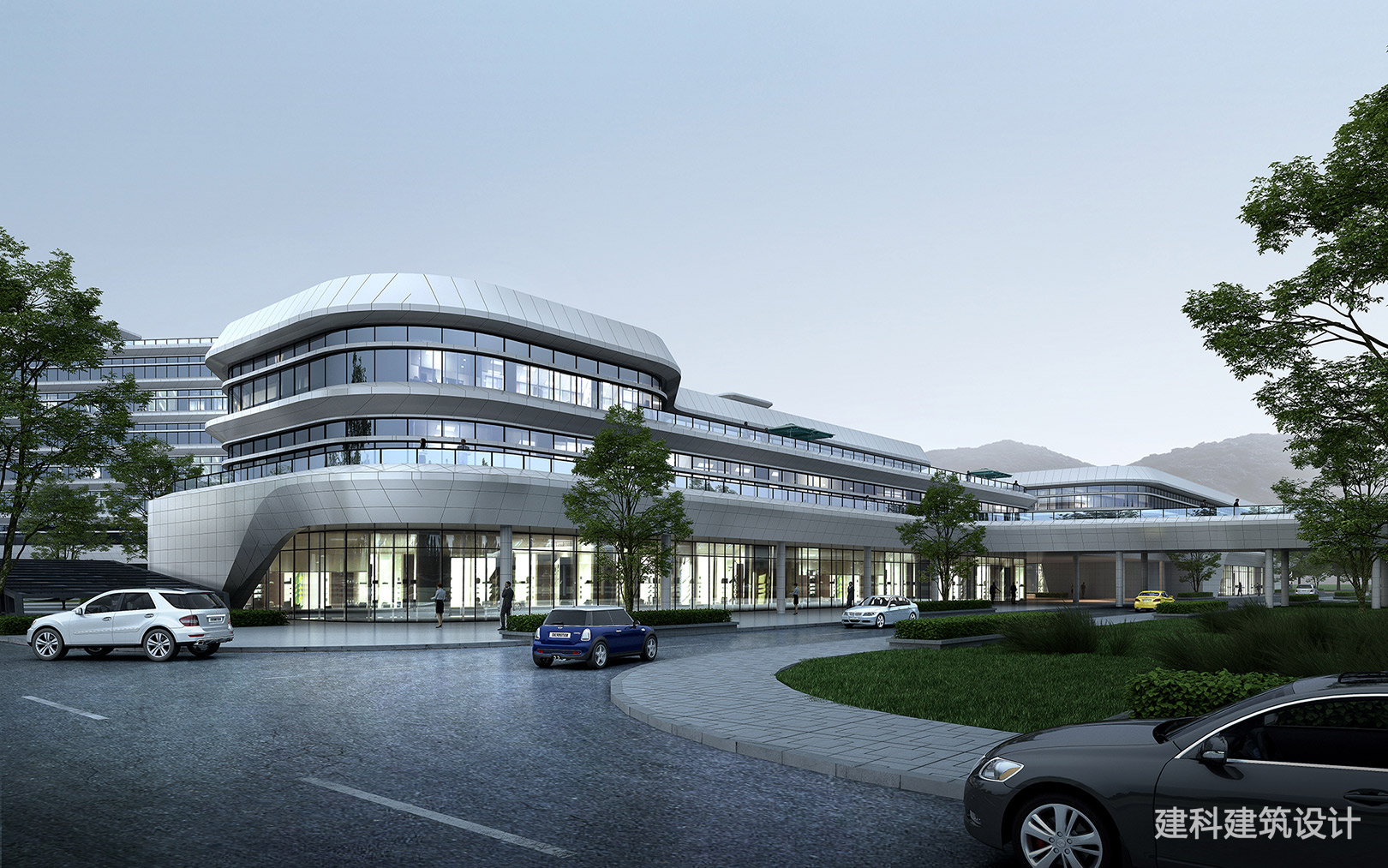 玻璃幕墙的流动弧度,将天光与远山揉进建筑肌理,让硬朗的现代感裹着自然的柔;车行、人行的动线在此从容衔接,每一处细节都是“功能美学”的具象表达。