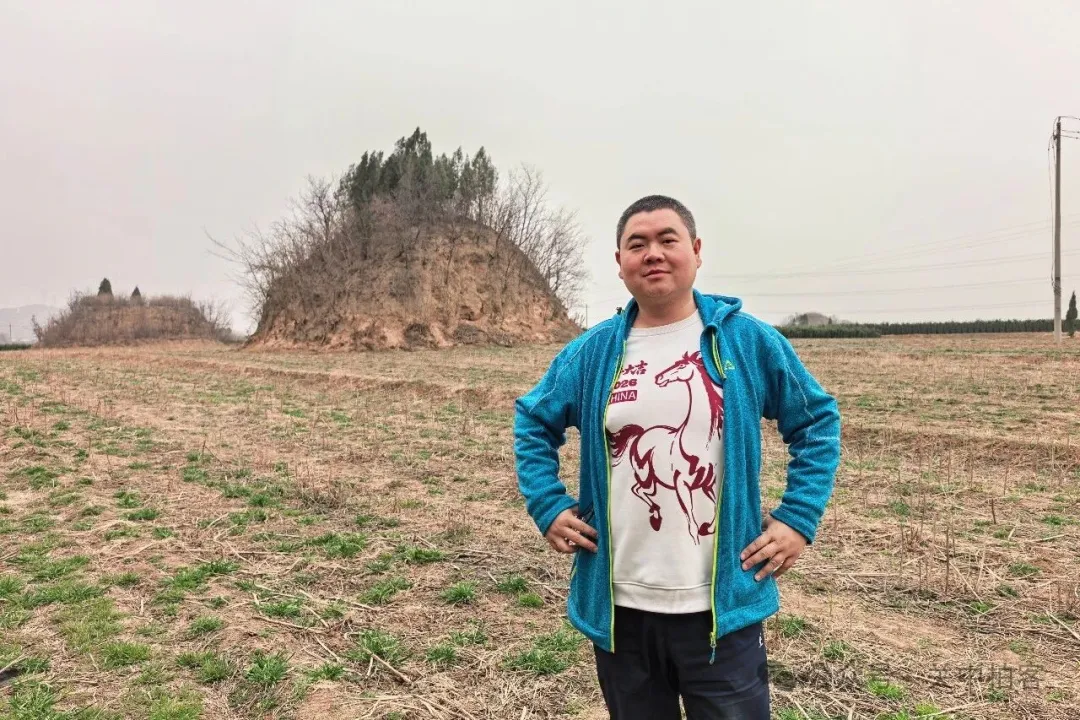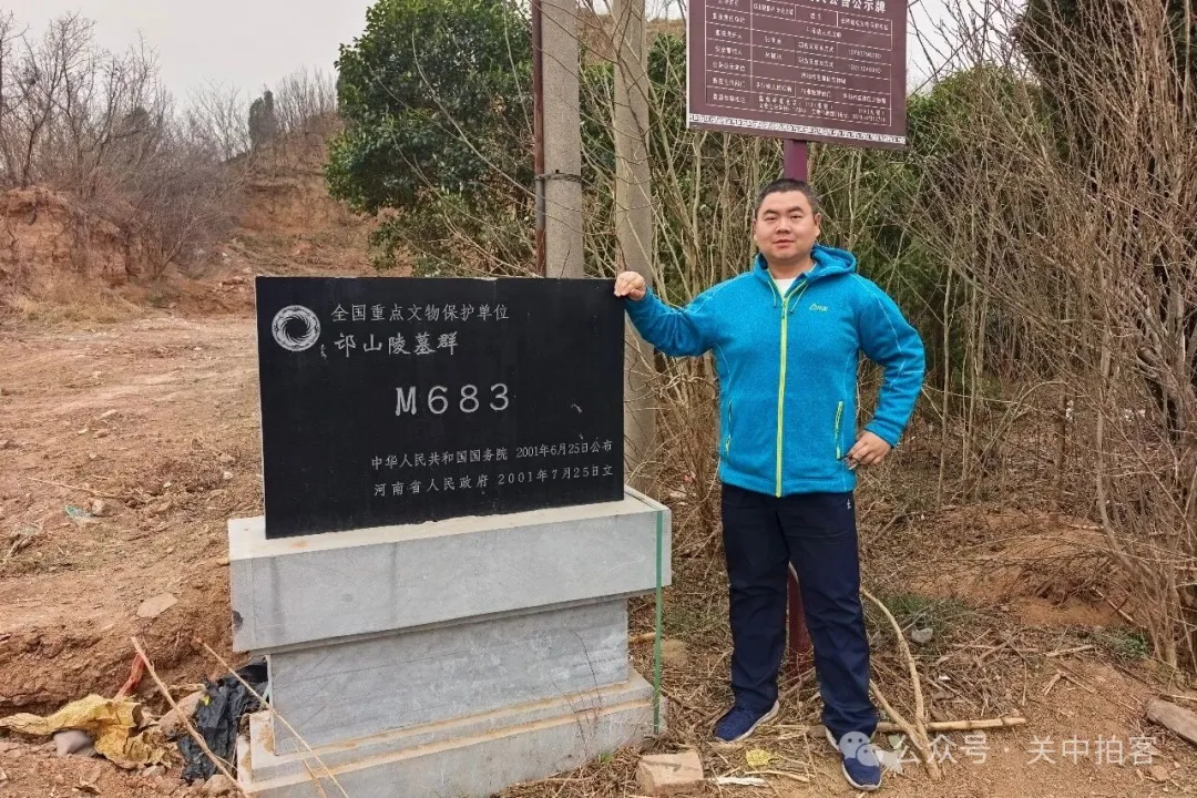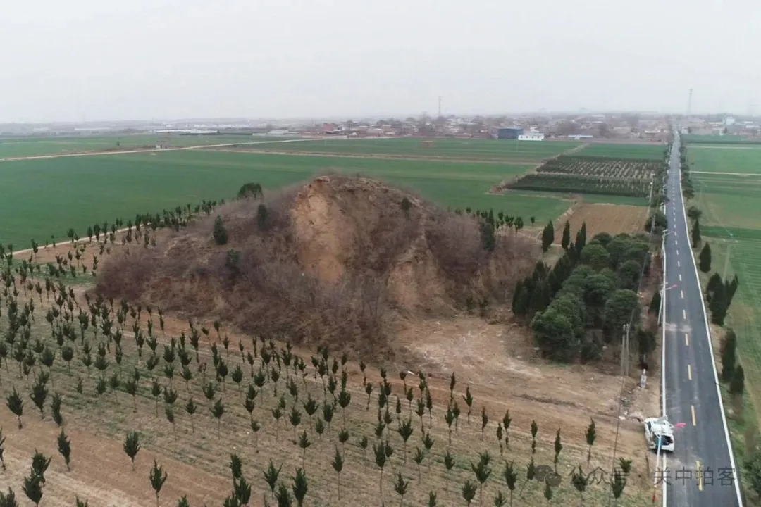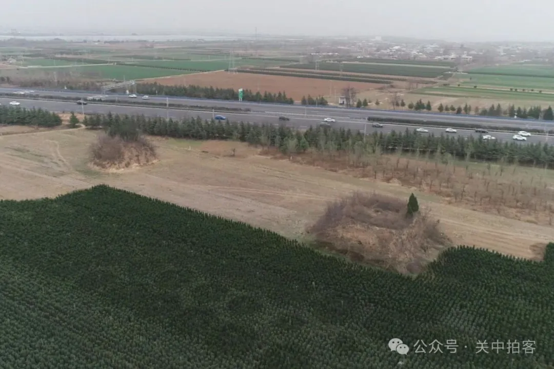 2026年2月23日中午,我路过洛阳市区东北郊时,来到高速公路旁边的朱仓村,寻访邙山陵墓群东部的古墓冢。首先,在路边的M683号墓冢旁,我使用无人机对周围的古墓冢进行航拍,包括东南边的“园冢”和西北边的五座“无名冢”。