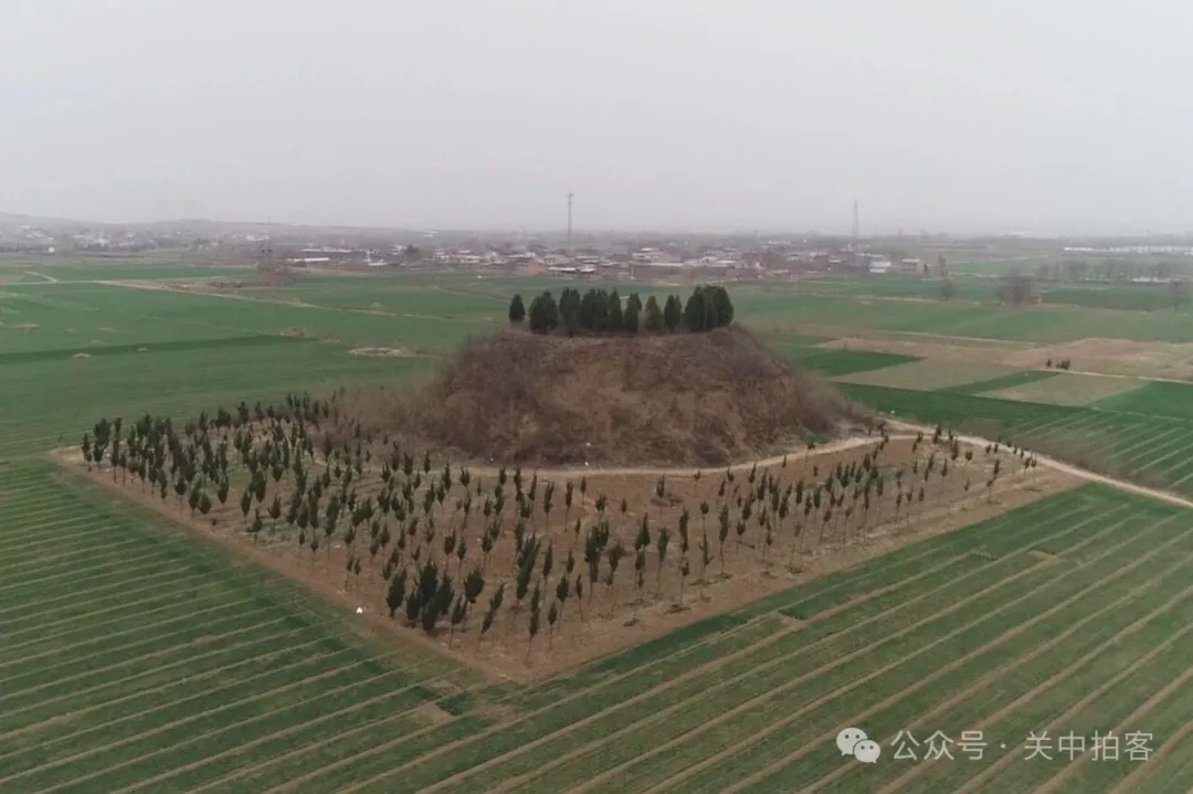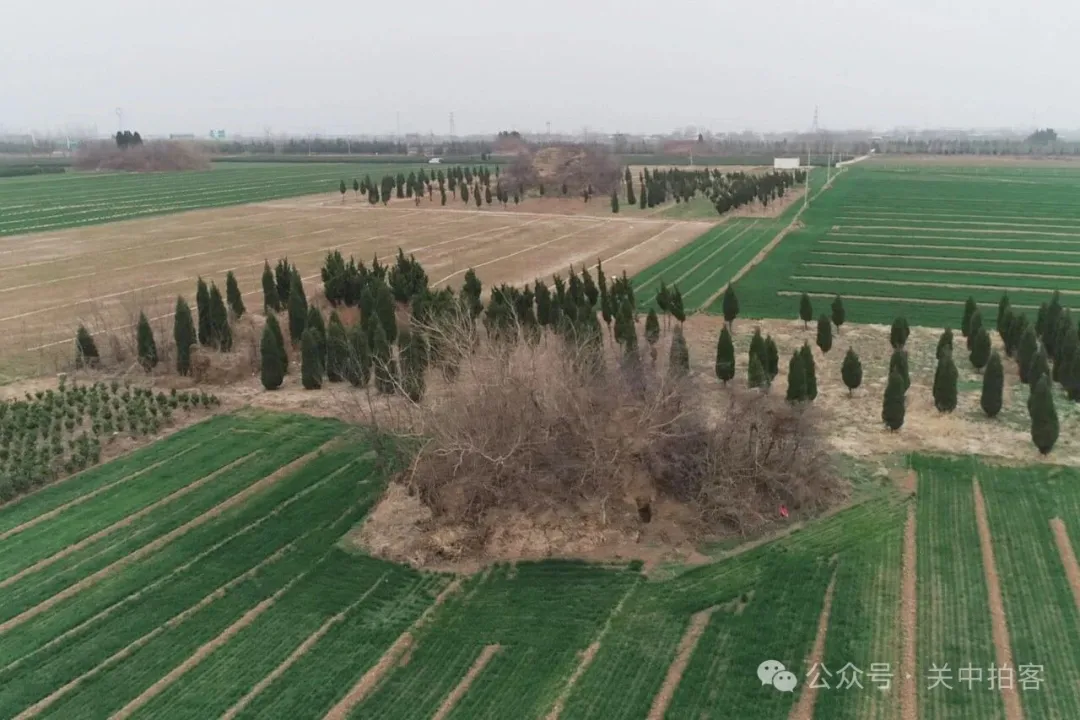 在M683号墓西北边约500米的田野里,坐落着大量保存较好的古墓冢,好像经过统一规划的陪葬墓园,搭配组合,排列整齐。从低空中,放眼望去,我拍摄到五座规模较大的墓冢。