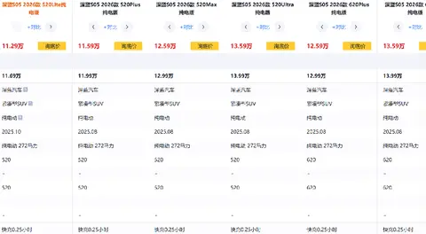 2026款深蓝S05在今年8月份正式迎来换新升级,推出了全新车型,迎来了更好的发展。目前,整车共有8款不同配置的版本参与销售,官方指导价为11.69万元到14.99万元之间。此外,深蓝官方还为用户提供了丰富的专属购车权益,进一步提升了整车的性价比,降低了深蓝S05这款车的入门门槛,吸引了不少消费者关注。接下来,我们选取官方指导价为14.99万元的深蓝S05 2026款 620 Ultra纯电版,作为代表车型进行详细解析,希望能为大家选车提供帮助。