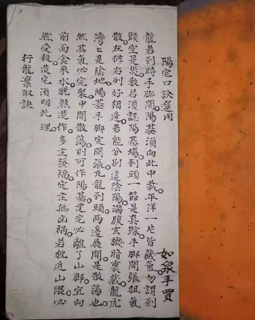 这份清代早期手稿字字珠玑、品相上乘,以“杨公秘传救贫”为核心,内容精悍实用、干货密集,兼具正统性与实战价值:书中系统记载阳宅口诀的应用要领、行龙弃取的核心判断准则,详解依龙作向的实操逻辑与三元向例催贵黄泉诀的推演方法。同时完整收录五中轮法诀、地基局断应诀、定宅神宅命等稀缺秘术,更有杨公秘传救贫一法十二字核心要诀,每句口诀、每个秘法都经过实践验证,无晦涩冗余表述,精准直指地理风水核心要义。