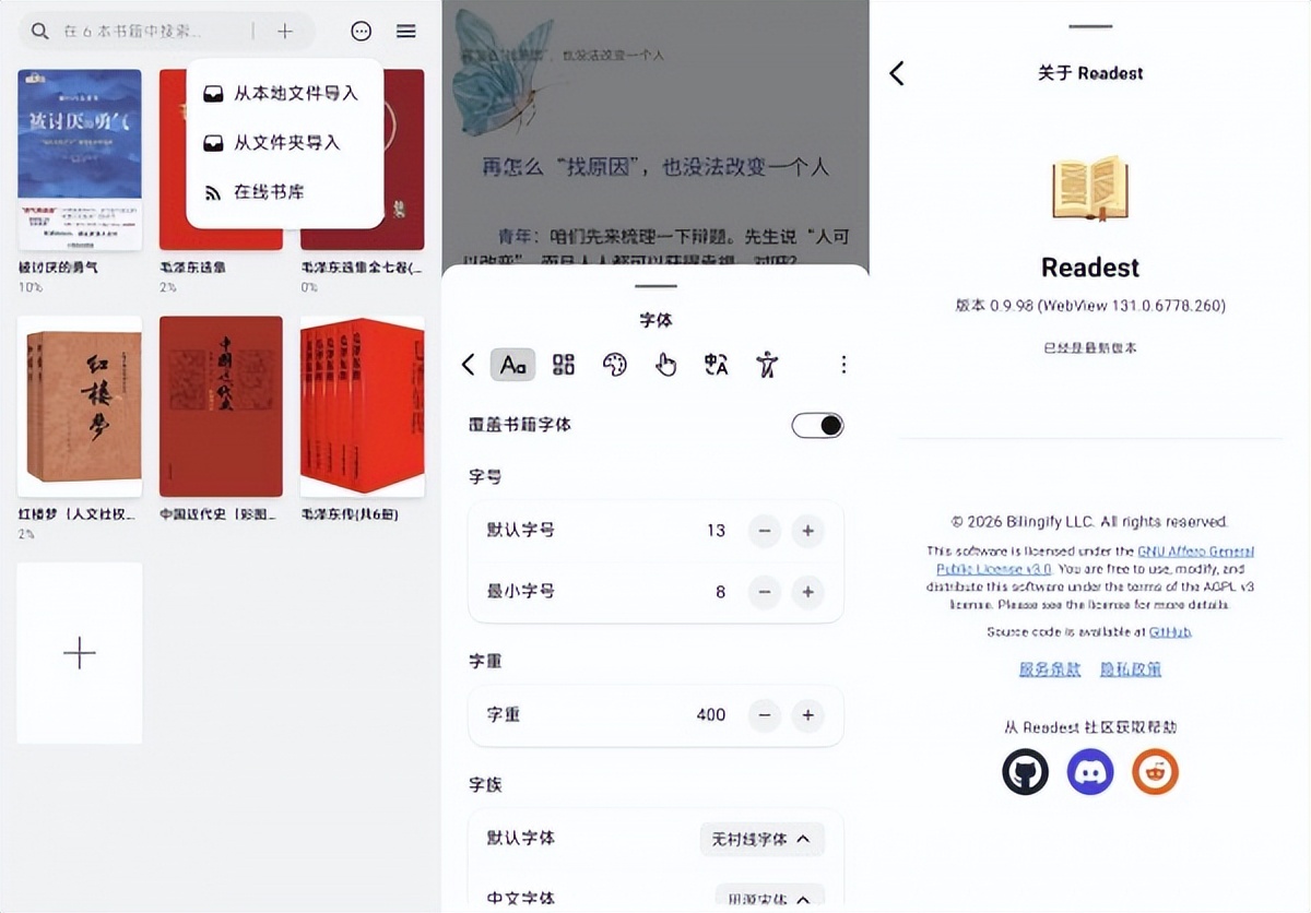 Readest是开源电子书阅读器,支持常见格式,界面极简。