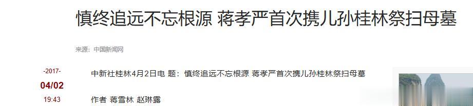 参考资料:中国新闻网——慎终追远不忘根源 蒋孝严首次携儿孙桂林祭扫母墓 2017-04-02