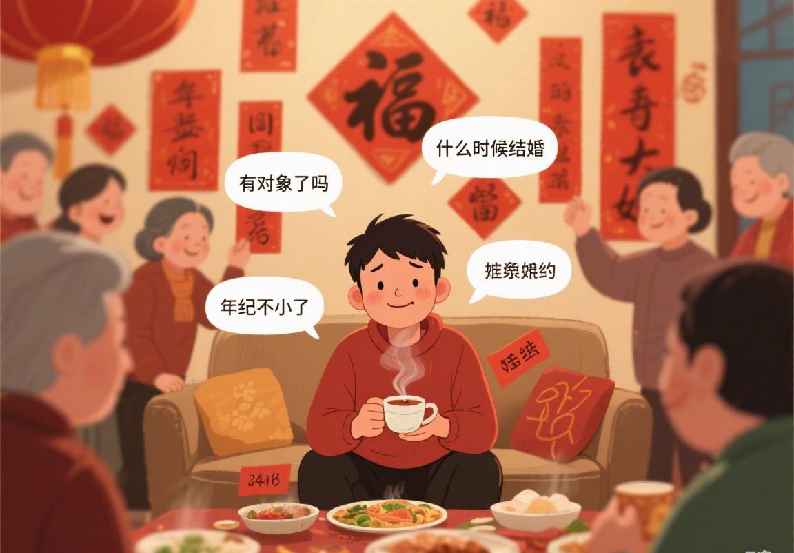 春节回家,对很多单身朋友来说,最怕的不是抢票的拥挤,而是那句“有对象了吗?”。从进门的第一声问候,到年夜饭的推杯换盏,催婚的话题就像背景音乐,始终萦绕耳边。这已不单是个人问题,而成了一种普遍的社会现象和心理负担。